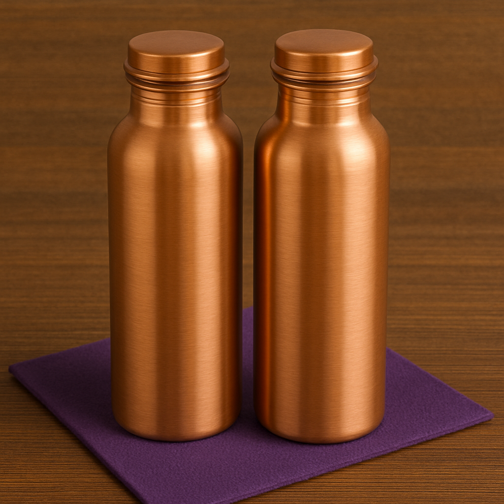 Pure copper water bottle set - Ground your daily hydration on the go with this set of pure copper bottles. Designed for everyday wellness, copper carries naturally antimicrobial properties and supports balance through trace mineral infusion. Ideal for structured water, detox routines or simply elevating your daily drinking experience.