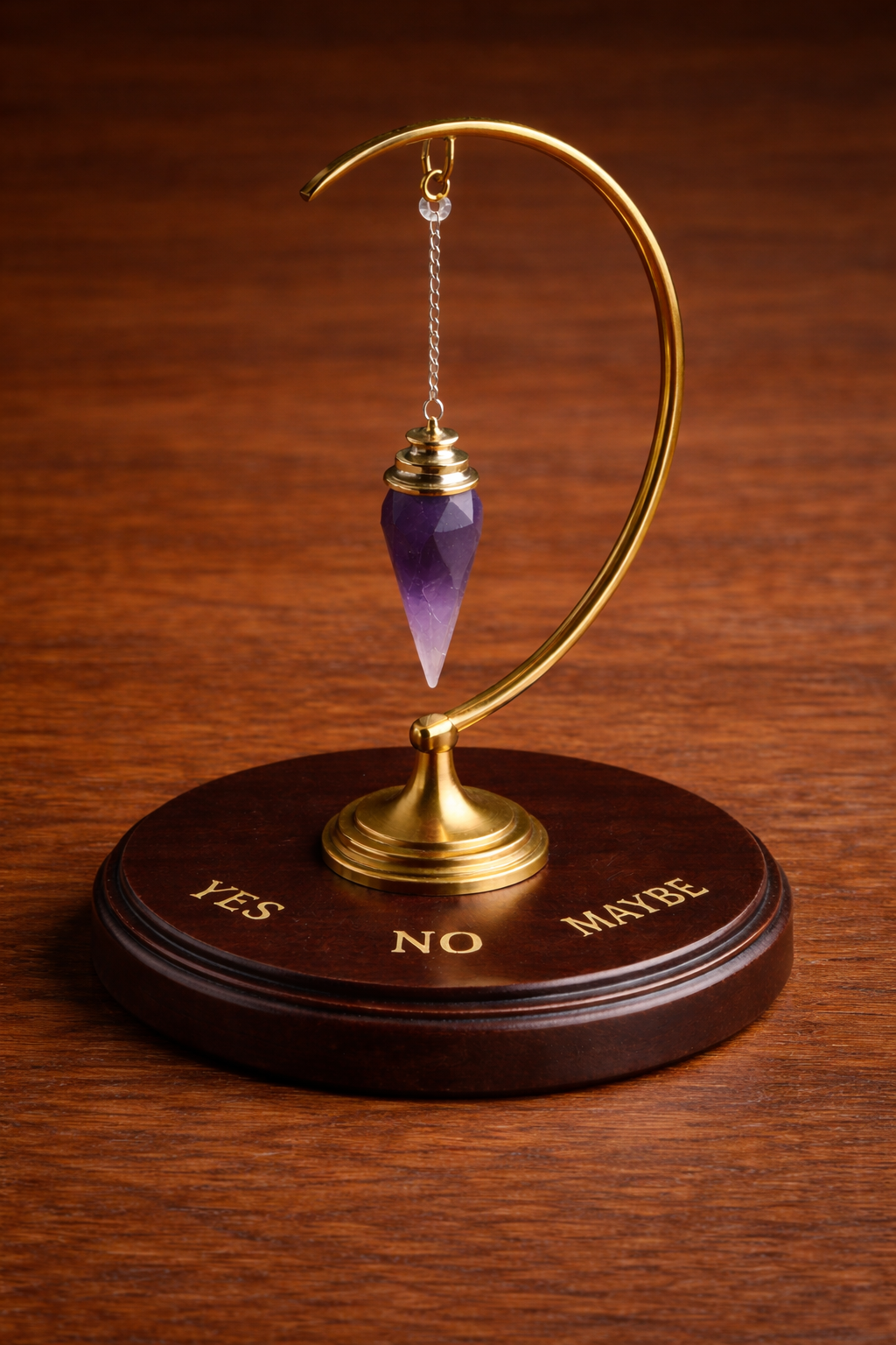 Hanging stand for pendulums, used for divination. Practitioners use them when involuntary muscle movement could influence answers for a more precise read.